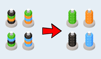 An exciting puzzle awaits you — sorting nuts of different colors on bolts. Your task is to rearrange the nuts between the bolts so that each bolt ends up with nuts of only one color. The game has an intuitive interface, but each new level becomes more difficult and exciting! With each level you will face new challenges. Plan your moves and use your mindset to distribute the nuts effectively.